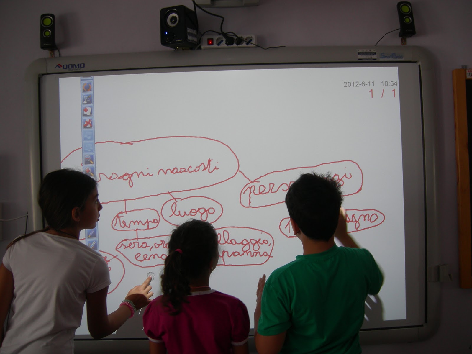 Oggi è il 12° incontro e dopo aver ascoltato alcune indicazioni della maestra, ogni gruppo ha prodotto la mappa nel mezzo al computer. La maestra ha spiegato come si fa il fumetto e da che cosa è costituito dandoci una scheda su cui la sceneggiatura era suddivisa in: immagine, luogo, tempo, testo, inquadratura e onomatopee.
